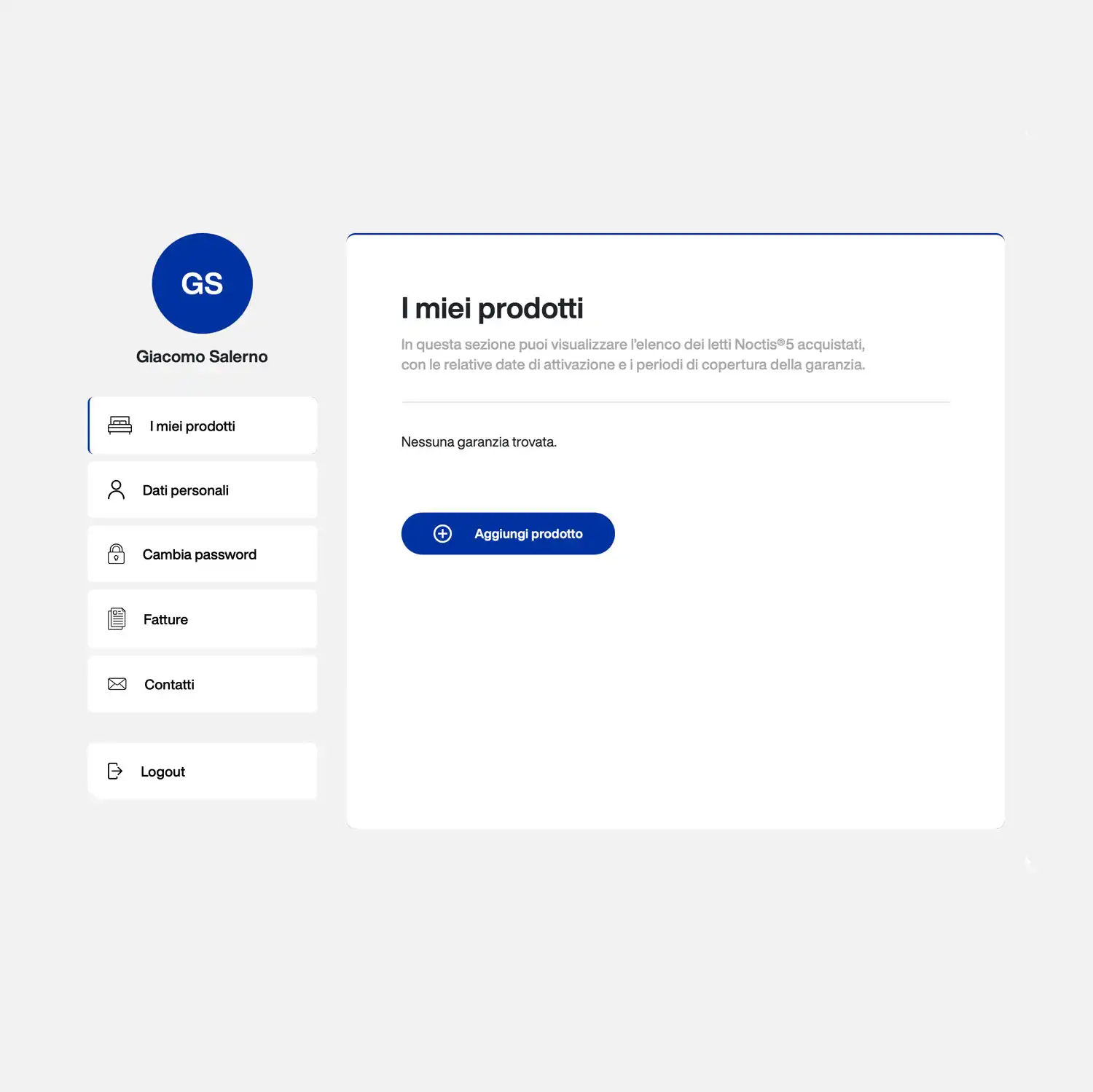 Una volta inseriti i tuoi dati personali, caricata la fattura di vendita e registrato il tuo codice di garanzia, riceverai via email le credenziali per accedere all’area riservata. Da qui potrai monitorare in qualsiasi momento lo stato di garanzia di tutti i tuoi prodotti Noctis, con semplicità e in totale sicurezza.