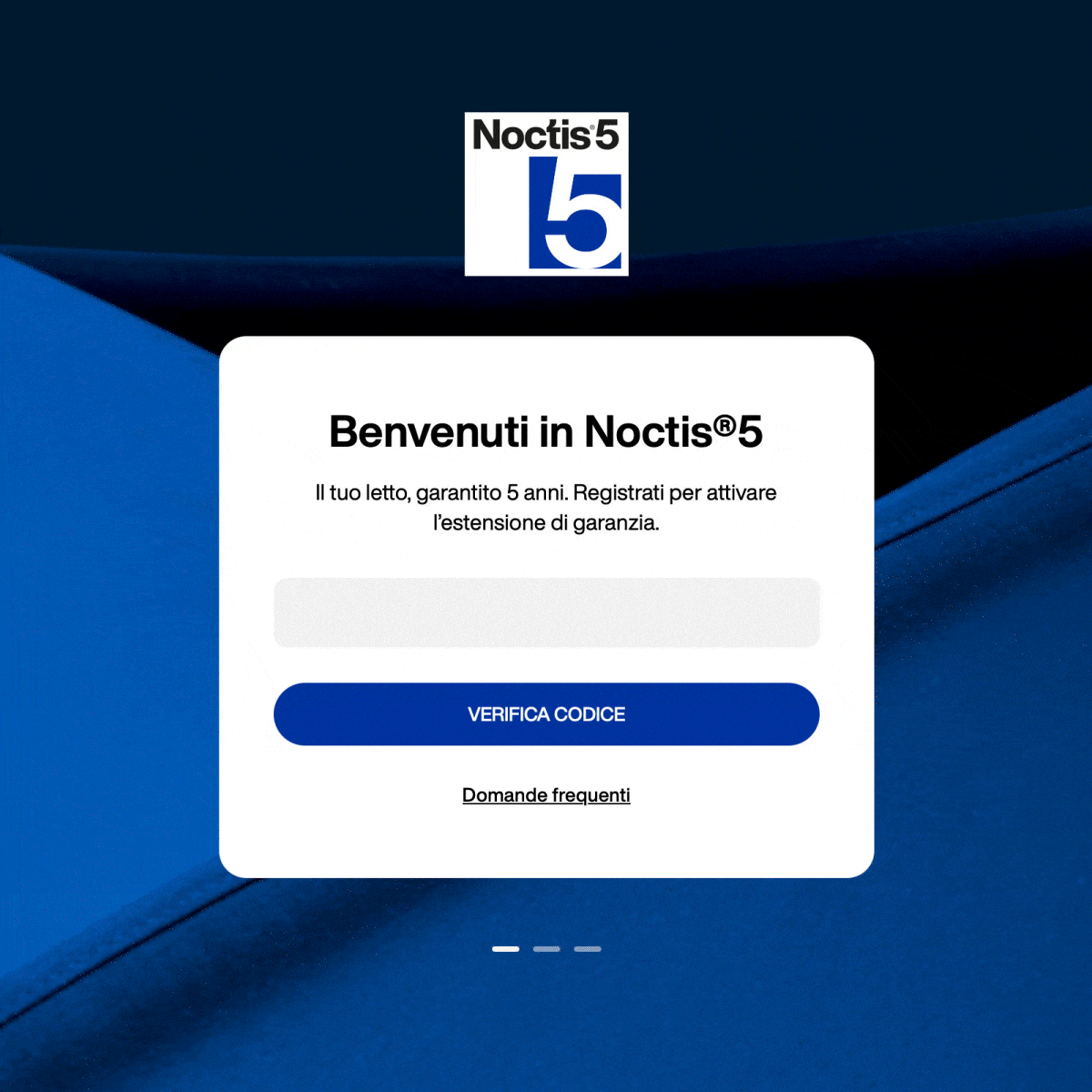 Acquista un letto Noctis e, al momento della consegna, riceverai un codice personale. Registralo su garanzia.noctis.it entro 30 giorni  e attiva subito la garanzia estesa di 5 anni.
